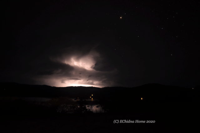 I find it quite lovely to sit out on my deck of an evening and night watching the sky and clouds. This was a stormy night and shows lightning behind the clouds, hitting the hills in the far distance. It makes me feel so small when I see and hear thunder and lightning storms. We do not normally get a lot of thunder and lightning storms where I live. Yet the last couple of years we have had more than ever in the time I have lived here.