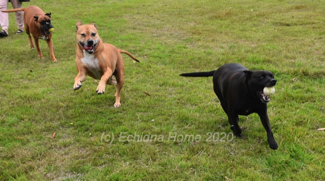 Chubbs is a Kelpie/Staffy cross, and he is all about the tennis ball carrying one in his mouth until safe to drop it and have it thrown for him. He would just keep running for the ball until he dropped. He is also a snuggler, who comes and leans on you, climbs up on my lap as I sat on the grass, and will kiss you at every opportunity. Not great especially if he has his soggy tennis ball in his mouth.
