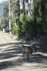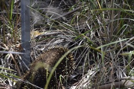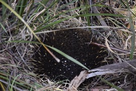 It was the echidna, baled up by both Busby and Miss Treacle. I moved them away, and watched as this wee guy left in quite a hurry. I do hope she/he had a trouble free day after we left.