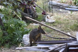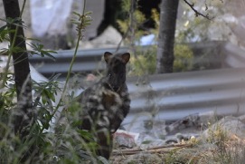 My peach trees lower branches had been stripped of the leaves, and in the process peaches have been knocked off. Here it was stretched up on its hind legs as high as it could reach! I slowly moved and went back in to grab my camera. Hoping the culprit would be still nibbling away upon my return. Sadly it moved (I had a bright blue t shirt on so Im not surprised I was noticed), I was able to capture this little guy. I do not begrudge he or her a nibble and know the tree is older and stronger, the branches are not as easily broken. There are enough peaches to share. The birds and possums eat the fallen ones.