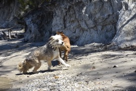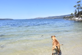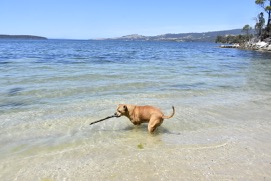 The following selection of photos shows what a great day it was, and how clean the water is. It is also showing my reluctant boy attempting to fetch a stick. I was quite mortified at his reluctance.