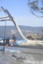 There were kids playing on the fallen tree. Swinging is not so much fun when the tide is going out. How wonderful to see them without a phone, taking photos or selfies. In fact no one (apart from me had any mobiles or cameras. How rare is that . All were in the moment enjoying the here and now. Using their brains to retain the feelings, the fun and all that will stay with them. That is what living is about.
