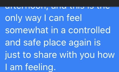 I did stop, collected myself and full of nausea and heart beating so loudly I could hear it reverberating my mouth dry shoulders and hands tight I opened messenger on Facebook. I wrote the following:-